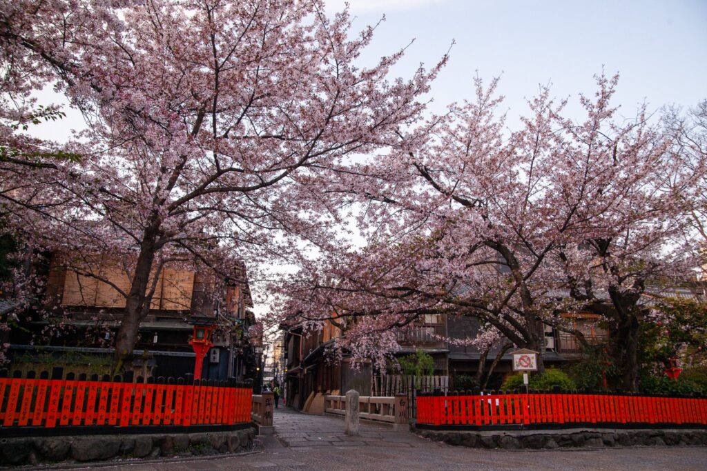 華笑みを出てすぐに訪れられる、祇園エリア屈指の桜スポット。白川沿いに咲く桜と柳、石畳、町家の風景はまさに“京都らしい春”そのもの。昼間はやわらかく、夕暮れは幻想的な雰囲気に包まれ、着物姿がいっそう引き立ちます。